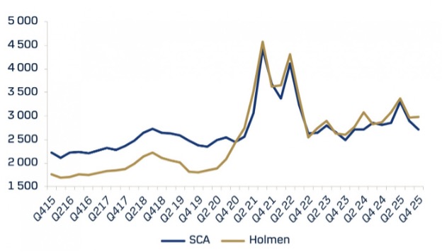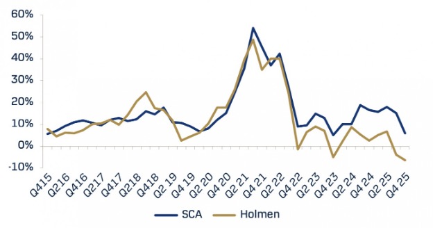 제재목 가격은 초기에는 하락세를 보였고 2025년 8월 1일 이후로는 대체로 변동이 없었습니다. 이는 제재목 가격이 관세나 수입세와 무관하게 수요와 공급에 의해 결정되기 때문입니다. 2025년에는 공급량이 풍부했고, 캐나다는 초과 생산된 제재목을 미국 시장에 서둘러 내놓았습니다. 캐나다의 과잉 생산 능력과 덤핑(자국 시장 판매 가격이나 생산 원가보다 낮게 판매하는 행위)과 같은 불공정 무역 관행은 미국의 정상적인 제재목 가격을 인위적으로 억제했습니다. 전미 주택 건설업체 협회 (National Association of Home Builders : NAHB)는 이러한 단기적인 효과를 환영할지 모르지만, 장기적으로는 미국 생산자, 노동자, 그리고 미국 전체에 심각한 결과를 초래할 것입니다. 미국의 생산량 감소, 생산 능력 위축, 일자리와 임금 손실, 그리고 국내 제재목 공급의 불안정화 등이 그 예입니다.