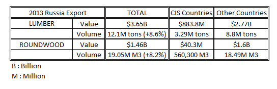 2013년 북미에서의 원목 총 수입량은 3,415,440M3로 2012년에 비해서 14.4% 상승하였습니다. 주택 시장에서 신축이 증가하면서 제재목과 합판의 수요가 증가하고, 이에 따라 원목에 대한 수요도 증가하였습니다. 북미에서의 원목 공급이 일본의 수요에 미치지 못했기 때문에 자국 내의 공급에 일부 의존하게 되었습니다. 그리고 엔화의 약세로 북미 제품에 대한 비용이 증가하게 되는 불리한 상황도 전개되고 있습니다. 일본 최대 Douglas Fir의 제조 업체인 Chugoku Lumber의 경우 2013년 수입량은 1,440M M3로 전년 대비 19% 상승하였고, 증가하고 있는 수요를 보여 주는 좋은 경우 입니다.