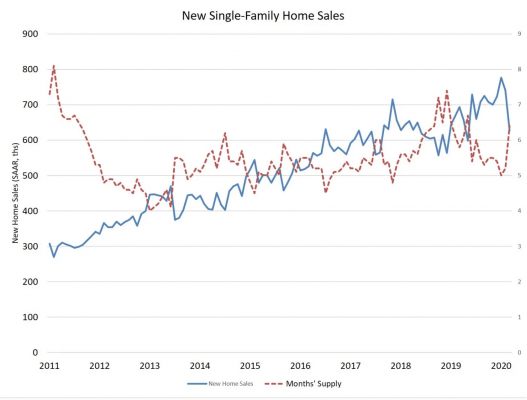2020년 강한 시작에도 불구하고미국 주택 판매는 COVID-19의 영향으로 3월에 급격한 약세를 보여 주었습니다. 2020년 3월 새로운 단독주택 판매는 15.4% 하락하여, 627,000 SAAR (seasonally adjusted annual rate)으로 HUD와 인구 조사국은 추산하였습니다. NAHB는 4월에 추가 하락을 예상하였고, 최근에는 26 million의 실직이 있었습니다. 년초 시장이 얼마나 강세이었을까요? 3월 하락에도 불구하고, 1월과 2월 시장 상황은 겨울동안의 온기를 제공하였고, 2020년 1사분기는 전년 대비 6.7% 상승하였습니다.