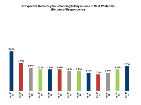 NAHB (National Association of Home Builders)의 최근 주택 경향 보고서에 따르면 COVID-19 팬더믹의 결과로 대부분의 미국인들은 추택 구매에 관심을 갖고 있습니다. 향후 12개월안에 주택 구매를 고려하고 있는 미국인은 2020년 4사분기에 15%로 전년 대비 4% 상승하였고, 지난 3년간 최고의 연간 증가를 보여 주었습니다. 이런 증가는 코로나 바이러스 발생이 주택 구매를 원하는 미국인들의 경향에 계속적으로 영향을 주었다는 것을 의미합니다.