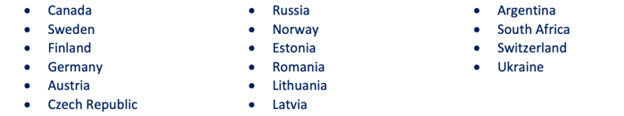 위의 16개국이 전세계 침엽수 제재목 2019년 교역의 79.6%를 차지하였고, 캐나다, 스웨덴, 러시아 3개국이 절반 이상을 차지하였습니다.