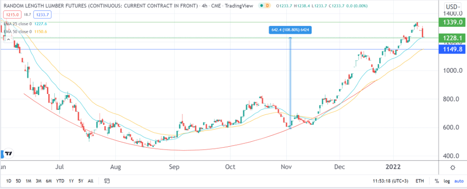 시기적으로 전통적인 경향과는 다르게 하지만 아무에게도 놀랍지 않게 1월 2째주 제재목 가격은 상승하였습니다. 2021년말부터의 강한 수요의 동력이 계속되고, 심각한 공급 제약, 특히 북서부 지역인 캐나다 British Columbia에서 눈에 띠게 심각해진 운송문제등이 합쳐지면서 가격 상승을 유도하였습니다. 공급망 전역으로 발생하는 교통 문제로 구매자들은 패닉 감정을 갖게 되었고, 일반적인 6주 인도 기간이 2달 혹은 그 이상으로 연장되었습니다. 그러면서 구매자들은 당황함에 가득 차게 되었습니다. 다시 한번 이례적인 이 시기의 미국 주택 신축의 강세는 구매자들이 제재목 주문을 해야만 하는 압력으로 다가왔고, 다가오는 봄 건축 시즌을 준비해야 합니다.