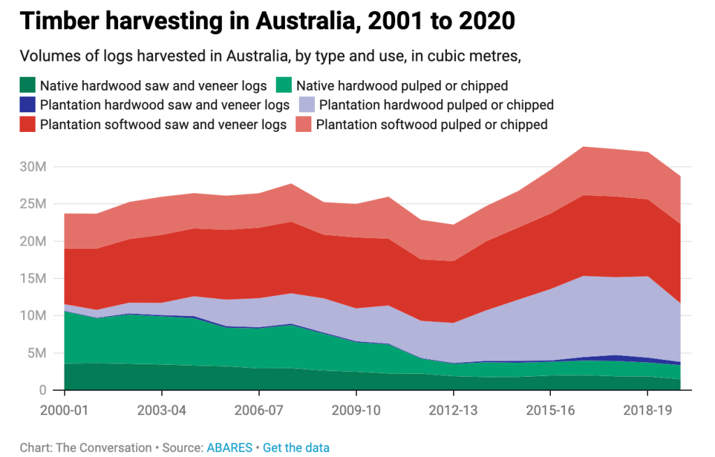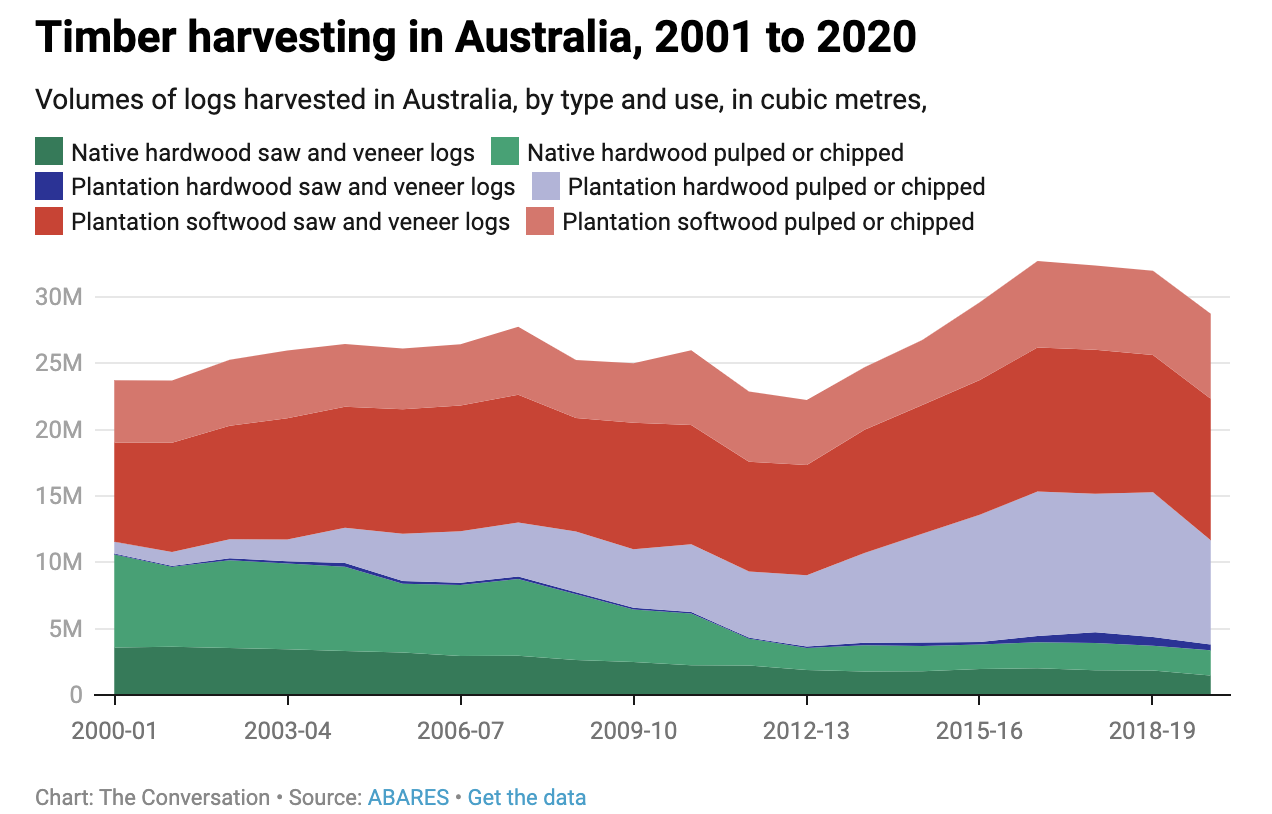 주택 신축이 상승하는 것은 제재목 수요 증가를 의미 합니다. 독립된 주택은 많은 양의 제재목을 사용합니다. 즉 침엽수는 골조, 지붕 등에, 활엽수는 내장재, 바닥재, 캐비넷 등에 사용됩니다. 그래서 평균적인 새로운 주택의 경우 전체 비용의 약 20%는 목재가 차지 합니다. 하지만 호주내의 제재목 공급은 반대 방향으로 가고 있습니다. 자국내 조림 생산이 증가하지 않으면서, 호주 자연림의 벌목은 하락하고 있습니다. 활엽수는 압도적으로 자연림에서 벌목되는데, 벌목량은 잔존하는 자연림의 보존에 따라 하락하고 있습니다. 특히 2024년 벌목이 끝나는 Queensland와 호주 서부 지역과 2030년에 끝나는 Victoria 지역에서의 공급량이 더 하락하였습니다. 침엽수는 대부분 상업적 조림지에서 벌목 됩니다. 지난 20년간 침엽수 벌목량은 약 40% 증가하였지만, 약 10년 동안 조림지양은 안정적 이었습니다. 최근에는 최소의 새로운 조림이 형성되었고, 호주 동부 지역은 2019년과 2022년 산불로 인하여 약 130,000 hectares 의 상업적 조림지가 영향을 받았습니다.