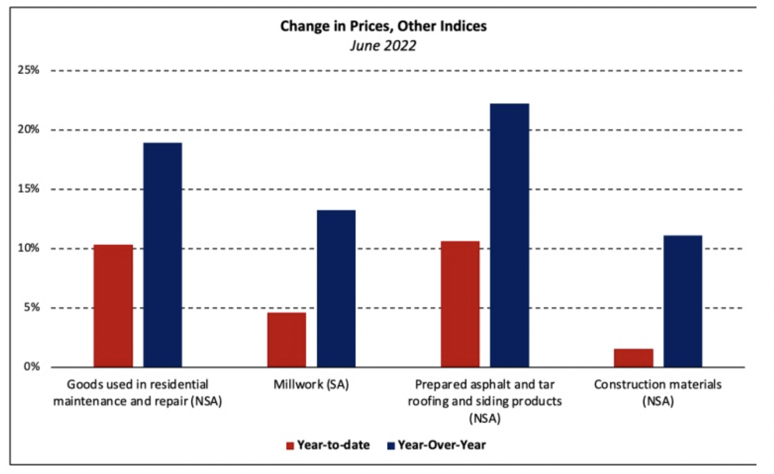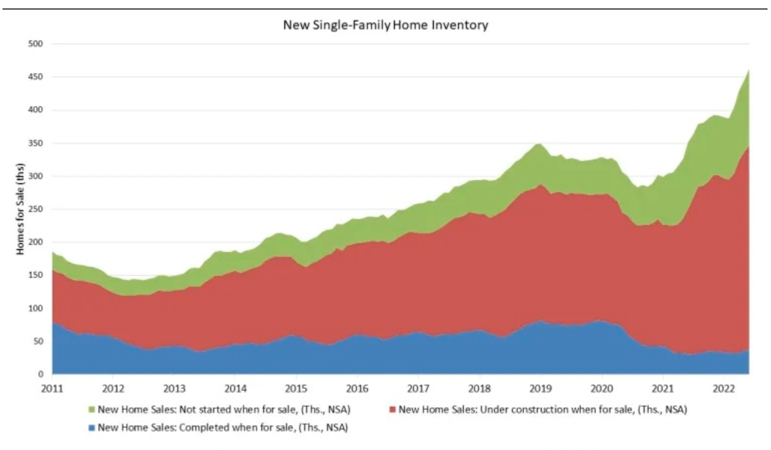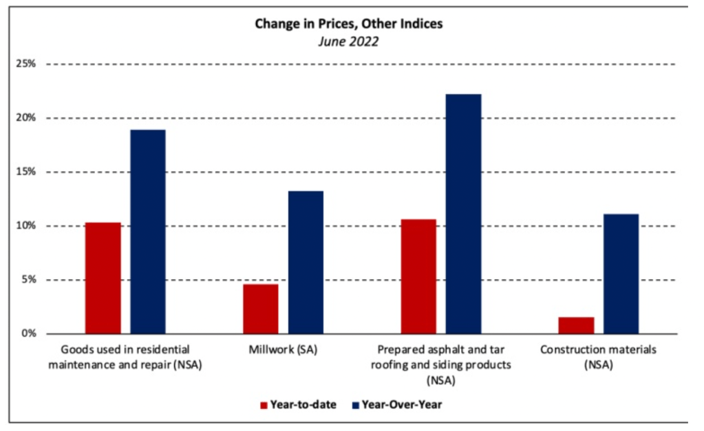 판매 조정 재고 수준은 6월에 9.3개월 공급으로 상승하였습니다. 완공되어 바로 입주 가능한 새로운 주택은 전국적으로 39,000 입니다. 아직 건축되지 않은 주택 판매량은 상승하여 전년 대비 25.1% 높았습니다. 판매 중간 값은 6월에 $402,400으로 5월보다 9.5% 하락하였지만, 전년 대비 7.4% 상승하였습니다. 올해 초부터 현재까지 2022년 상반기 전국적인 주택 판매량은 13.45 하락하였습니다. 지역적으로 동북부는 12.1%, 중서부는 24.8%, 남부는 12.6%, 서부는 9.6% 하락하였습니다.