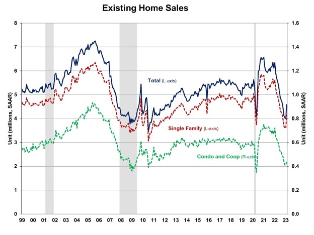 주택융자 이자율의 짧은 하락과 미국 주택 가격의 하락으로 2023년 2월의 기존 주택 판매는 증가하였다고 National Association of Realtors (NAR)는 발표하였습니다. Freddie Mac 에 따르면 30년 주택융자 이자율은 평균적으로 6.3% 이하 이었고, 2월의 주택 판매 중간 값은 2021년 2월이후 처음으로 하락하였습니다. 그리고 월간 판매 증가는 12개월 하락을 마감하였다고 National Association of Home Builder (NAHB)는 보고하였습니다. 단독주택, 타운 홈, 콘도미니엄, 협동조합을 포함한 기존주택 총판매는 2월에 14.5% 상승하여 계절적 요소를 조정한 연간율로 4.58 million 이었습니다. 연간 기준으로 판매는 작년보다 여전히 22.6% 낮습니다. 2월에 처음으로 주택을 구매한 구매자 비율은 지난 달 31%에서 27%로 하락하였습니다. 이런 처음 주택 구매 비율의 약세는 시장이 경험한 가격 책정을 상기시켜 주었습니다. 2월 재고 수준은 0.98 million units를 유지하였지만, 작년의 0.85 million보다는 높습니다. 현재 판매 속도기준으로, 2월의 판매되지 않은 재고는 2.6개월 공급량인데, 지난 달 2.9개월 공급보다는 낮아졌지만, 작년 같은 시기의 1.7개월보다는 높습니다. 재소 수준은 균형 잡힌 시장 상황 (4.5-6개월 공급)에 비하면 매우 낮은 수준입니다. 그래서 더 많은 주택 건축에 대한 장기적인 필요성을 설명하는 것 입니다.