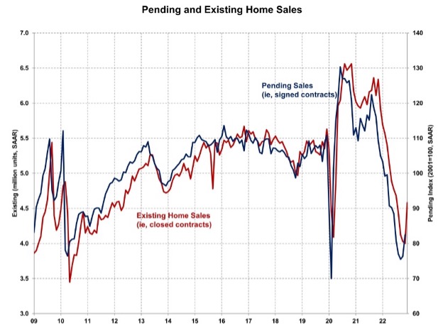 잠정주택판매지수 (Pending Home Sales Index : PHSI)는 서명된 계약에 기초한 미래 전망 지표 입니다. PHSI는2월에 전월(76.3) 대비 8.1% 상승하여 82.5이었습니다. 연간 기준으로 잠정 판매는 전년 대비 24.1% 낮았다고 NAR 자료가 보여 주었습니다.
