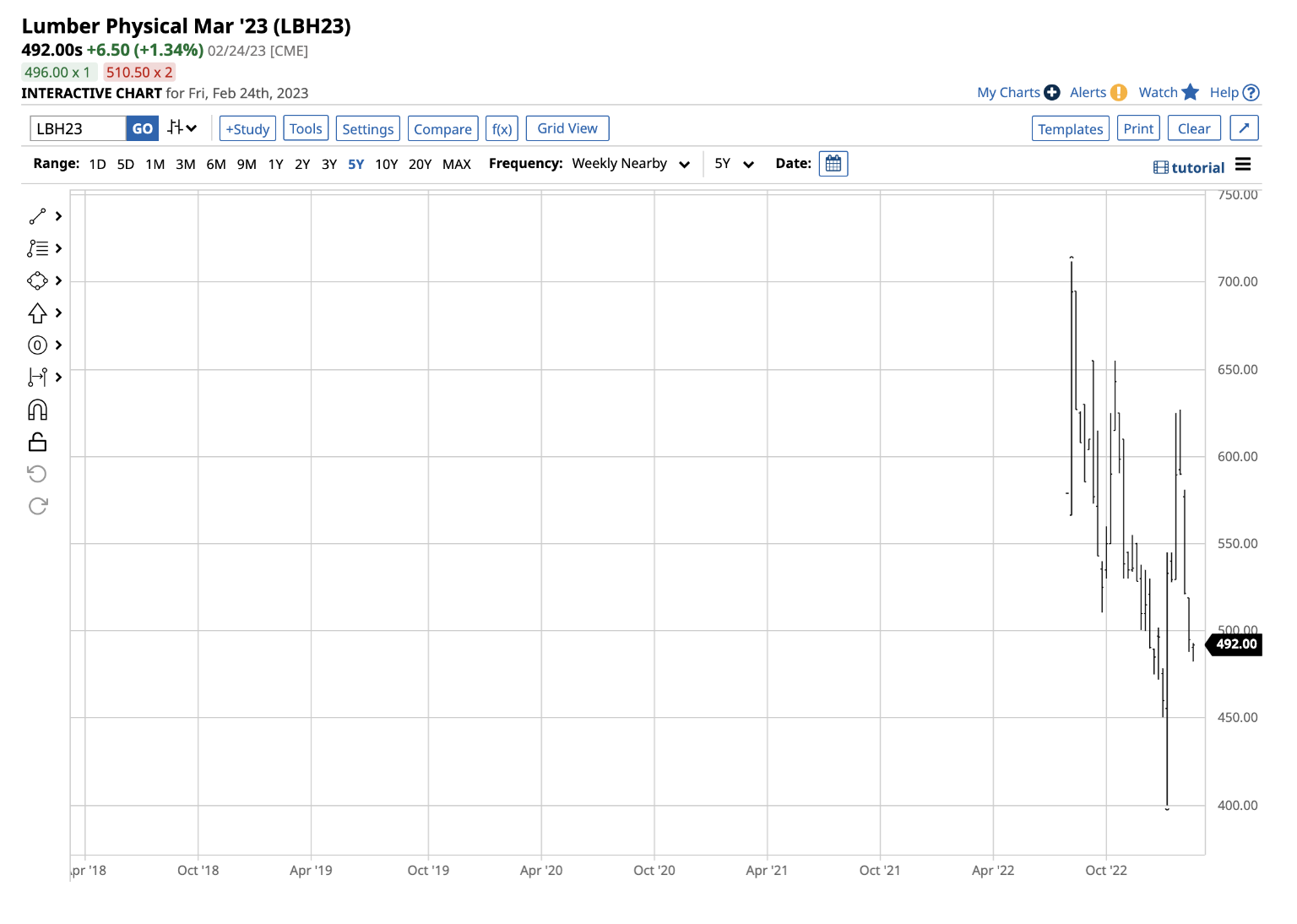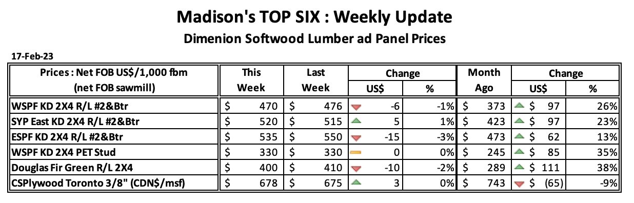 PF Olsen Log Price Index (원목가격지수)는 1월과 2월에 $4 상승하여 $127이었습니다. 지수는 현재 2년 평균보다 $4, 5년 평균보다 $3 높았습니다.