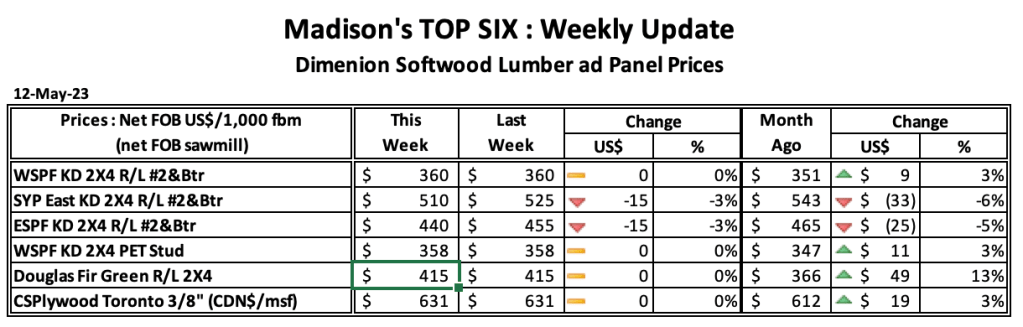 5월 중순이 되었지만 평상적인 봄 주택 건설은 가시화되지 않았습니다. 가혹했던 겨울 날씨가 기억에서 사라지고 있고, 정상적인 계절적인 기후가 북미를 감싸고 있지만 여전히 건설 활동은 증가하지 않고 있습니다. 거시 경제학적 조건, 잠정적으로 새로운 주택 저조에 대한 의문, 일반적인 단순한 불확실성 속에서 대부분의 관련자들은 제재목 구매에 대하여 옆으로 벗어나 상황을 지켜보고 있습니다. 모두가 무엇을 할 수 있는지를 기다리고 있는듯 합니다.