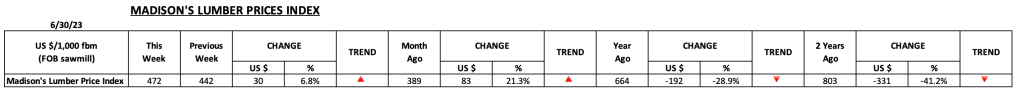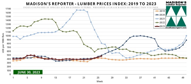 2021년과 2022년의 제재목 가격의 극심한 변동성은 백미러에 나타나고, 좀 더 안정적으로 되면서, 올해에는 정상 가격으로 갈 것이라고 Madison Lumber의 소유주 Keta Kosman은 예상하였습니다. 이번 주 Western spruce-pine-fir (SPF) 가격은 상승하여 US $446/thousand board feet이었다고 Kosman는 보고하였습니다. 이 가격은 B.C. 제재소들에게는 좋은 상황 입니다. 작년 이후 높아진 운영 비용과 가용가능한 목재 공급 감소에 상당한 부분 기인하면서 다수의 B.C. 제재소들은 잠정적인 감산 혹은 운영 중단을 하였습니다. 제재목 가격은 팬더믹중에 리모델링과 레노베이션의 증가로 상승하였고, 그로 인하여 새로운 주택의 시장도 상승하였습니다. B.C. 지역의 원목 공급의 감소와 운영 비용 상승으로 공급이 도전을 받았습니다. 2021년에는 Western spruce-pine-fir (SPF) 가격은 역사상 최고 수준으로 US $1,600/thousand board feet이었고, 2022년에는 제재목 가격이 U S$1,410/thousand board feet 이었습니다. B.C. 제재소들은 생산한 제재목을 매우 높은 가격을 받았지만, 많은 제재목을 실질적으로 생산하지 못하였다는 것을 Kosman는 주목 하였습니다. 그래서 Kosman에 따르면 제재목 판매량이 많지 않았고, $1,600의 4개 철도 차량보다는 $800의 40 철도 차량으로 판매 하였습니다. 지난 해에 제재목 가격은 조정되었는데, 매우 갑작스럽고, 급격하였다고 Kosman은 주장하였습니다. 인플레이션을 완화할 목적으로 이자율을 상승 시키면서 주택 가격은 실로 진정되었습니다. 하지만 밀레니엄 세대들의 영향으로 새로운 주택에 대한 근본적인 수요 암시인 주택 신축이 상승하였습니다. 2023년 5월 미국의 주택 신축에 대한 가장 최근 데이터에 따르면, 5월 신축은 4월과 비교하여 22%, 2022년 5월보다는 6% 상승하였습니다. 북미 특히 미국에는 수요 지지 기반이 존재 하였습니다. 왜냐하면 다수가 35세로 진입하는 밀레니엄세대를 포함한 처음으로 주택을 구입하는 구매자들의 단일 최대 집단 때문 입니다. 그래서 진짜 수요의 모멘텀이 존재한다고 Kosman은 언급하였습니다. 산불 혹은 B.C. 항구에서 현재 진행되는 파업과 같은 노동 쟁의와 같은 다른 외부 요인은 제재목 시장에 충격을 줄 것이고, 일반적으로 말하면 제재목 수요와 가격이 정상적으로 복귀할 것 같습니다. 새로운 정상 수준이 어디인지를 자세하 검토하고 있다고 Kosman는 말했습니다.