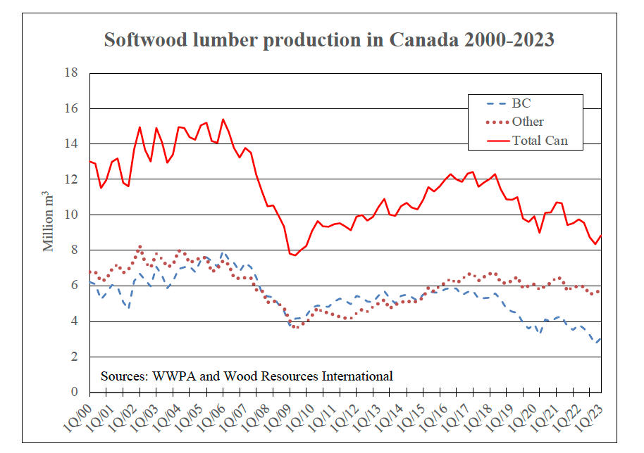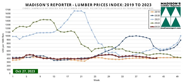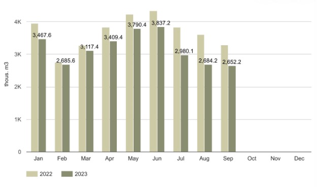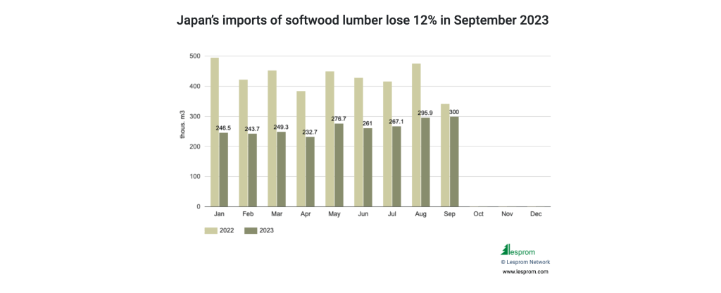 2023년 9월 일본의 침엽수 제재목 수입량은 전년대비 12.3% 하락하여 300.0 thousand m3이었고, 수입액도 46.2% 감소하여 $106.5 million이었습니다. 2023년 9월 일본 침엽수 제재목 수입 평균 가격은 38.7% 하락하여 $354.9/m3이었습니다.