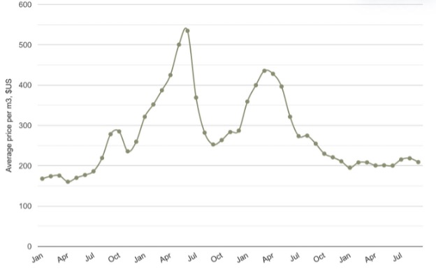 LUKE 보고서에 따르면 에너지 목재 가격은 예외적으로 빠르게 상승하여 거의 pulpwood 가격에 근접하였습니다. 2023년 3사분기 전지 줄기 평균 가격은 pulpwood 평균 가격의 약 80%에 근접하였습니다. 이런 경향은 2022년 말부터 시작되어 전지 줄기 실가격은 2022년 말부터 상승하기 시작하여 pulpwood 가격의 격차를 줄여 갔습니다. 배달 판매의 경우에는 전지 줄기와 pulpwood 가격은 좀 더 근접하였고, 2023년 3사분기에는 같은 수준이었습니다. 이는 주목할 만한 전환인데, 전통적으로 pulpwood 가격은 전지 줄기 가격보다 상당히 높습니다. 2023년 9월 4.6 million m3 원목이 핀란드에서 산업용으로 벌목되었습니다. 2022년 9월과 비교하면 벌목량은 20%, 1.3 million m3 하락하였습니다. 벌목 잔유물은 에너지 목재 전체 교역의 거의 ½ 이었고, 입목 판매 평균 가격은 Euro 7.4/m3 이었습니다. 가격은 전분기대비 8% 하락하였지만, 전년 평균 가격보다 여전히 42% 높았습니다. 배달 판매의 경우 원목 잔유물 가격은 13% 증가하여 Euro 27.7 이었습니다. 2023년 3사분기 통계에 따르면 에너지 목재 교역량은 1.0 million m3으로 전년대비 10% 하락하였습니다. 하지만 이는 이전 5년 평균량보다 여전히 거의 1/3이 높았습니다. 원목 단가는 소비자 물가 지수의 실질을 조정한 통계 데이터 베이스의 적정 가격에 기초하여 기록 됩니다. 발표된 목재량은 비산업용 민간 산림에서 구입한 에너지 목재의 단지 ½ 조금 넘게를 포함하고 있다는 것을 주목하는 것이 중요합니다. 핀란드의 비산업용 민간 목재 교역을 전부 포함하지는 못하고 있습니다. 기록된 가격은 단지 판매자와 구매자 간의 목재 교역 동의 된 것만 포함하고 있고, 정부 보조금과 목재 교역과 관련된 부가적인 상승과 서비스는 배제 되었습니다. 분석은 소비자 가격 연간 상승을 고려하고 있는데, 2023년 3사분기에는 약 6% 이었습니다.