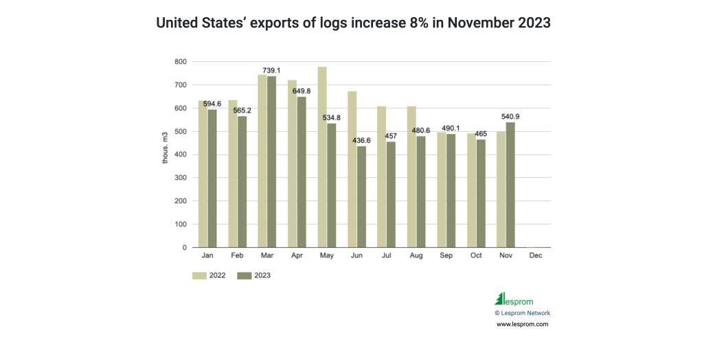 2023년 브라질 제재목 총 수출에서 미국인 33% 차지 하였습니다. 그 다음은 23%의 멕시코, 8.9%의 중국, 6.4%의 베트남 이었습니다. 2023년 브라질 제재목의 미국 수출량은 전년대비 25% 하락하여 931 thousand m3이었지만, 멕시코는 8.6% 증가하여 663 thousand m3이었고, 중국도 22% 상승하여 255 thousand m3이었습니다.