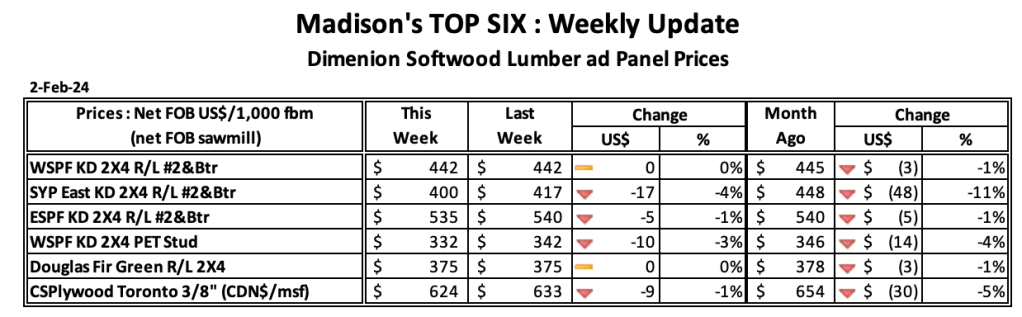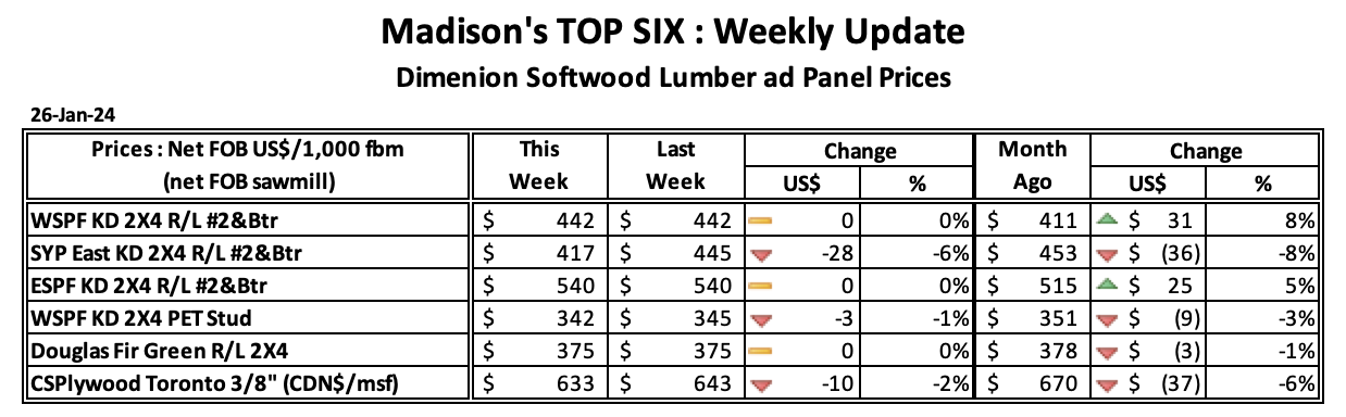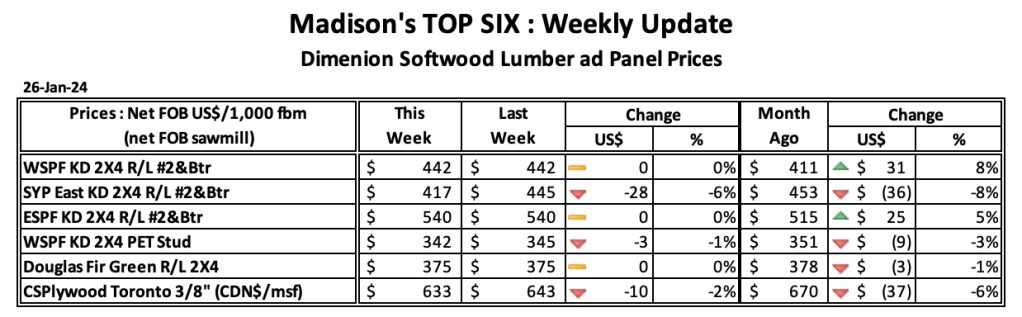 2005년 캐나다 제재목 수출은 강력하여 56.7 million m3이었고, 수출액은 $8.7 billion 이었습니다. 하지만 2008년에는 수출량이 33.45 million m3, 수출액도 $5.1 billion으로 하락하였습니다. 위기 후에는 점진적인 회복을 보여주면서 상향 경향을 유지하다가, 2015년에는 수출량이 피크가 되어 41.9 million m3이었습니다. 그러나 이런 회복이 변동을 만나면서 수출량이 정상적으로 하락하다가, 2023년에는 32 million m3으로 급감 하였습니다. 캐나다 제재목 수출액은 수출량에 따른 어는 정도 거울 효과를 보여주면서, 2021년에 주목할 만한 상승을 보여 주면서 역대 최고인 $13.5 billion 이었고, 참고적으로 2021년 수출량은 최대 수준에 이르지 못하였습니다. 2021년의 이런 이례는 제재목 가격의 급상에 기인하고 있습니다. 공급 제한과 팬더믹으로 인한 건설과 리노베이션 프로젝트의 급증으로 인하여 2021년 제재목 가격은 $359/m3 이었습니다. 이 가격 급상은 일시적인 현상이었고, 2022년에는 가격이 $321/m3로 조정되고, 2023년에는 $204/m3으로 정상화 되었습니다.