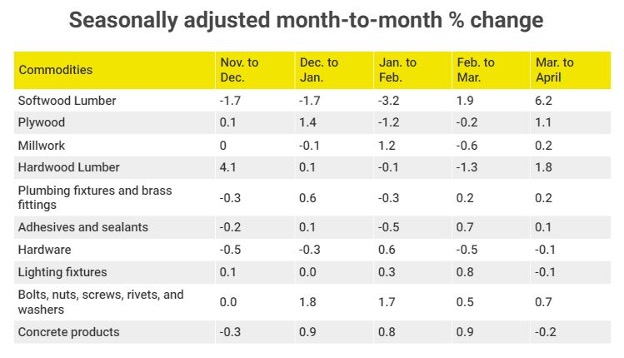 2024년 4월 평균 목재 가격은 아래와 같습니다.