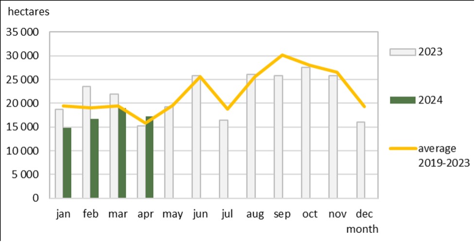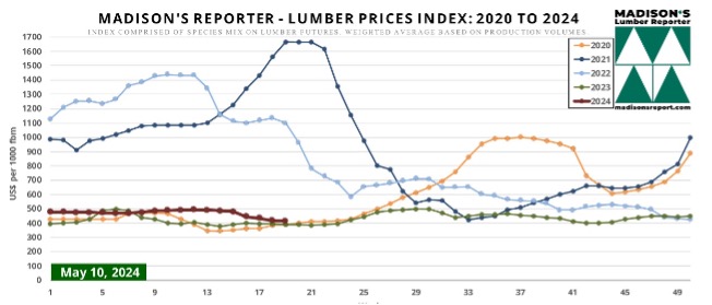 2024년 3월 목재 생산품 매출은 2월의 C$3.895 billion에서 1.9% 증가하여 C$3.97 billion이었지만, 2023년 3월의 C$4.302와 비교하면 7.7% 하락하였습니다. 목재 생산품 제조 분야의 가동률은 3월에 5.3% 포인트 상승하여 80.6%이었고, 2023년 3월의 80.7%와 거의 동일 하였습니다.