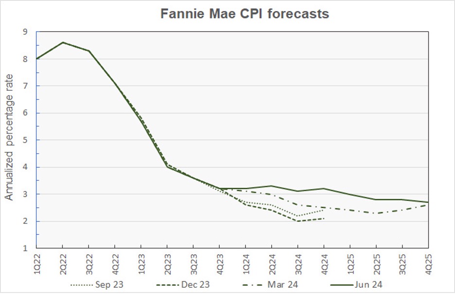 아래의 그래프는 소비자 가격 지수 (Consumer Price Index : CPI)에 대한 Fannie Mae의 예상 입니다.