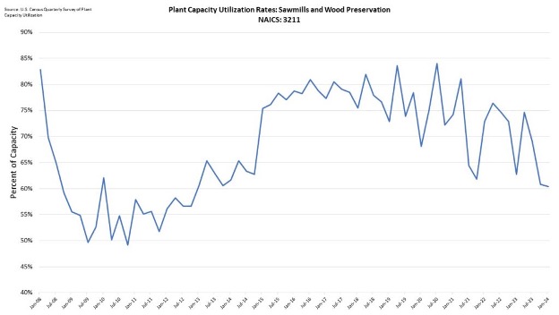제재소와 목재 보존 산업의 더 나은 이해를 제공하기 위하여, 미국 센서스국(Census Bureau)의 공장 설비 가동률의 분기별 설문 조사(Quarterly Survey of Plant Capacity Utilization)는 또 다른 흥미의 원천 입니다. 이 데이터는 미국 자국 제조 공장과 제재소와 목재 보존 회사의 하위 산업 그룹을 포함한 분기별 설문조사의 결과 입니다. 가동률의 이런 측정은 완전 생산 능력에 기초하고 있습니다. 가동률은 분기동안 실재 생산의 시장 가치와 회사가 완전 생산 용량으로 생산할 수 있는 것을 예측된 시장 가치로 나누는 것으로 찾아지는 것을 의미 합니다.