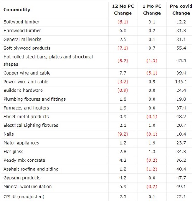 아래의 그래프는 일부 다른 건축 자재 가격의 최근 역사를 보여 주고 있습니다.