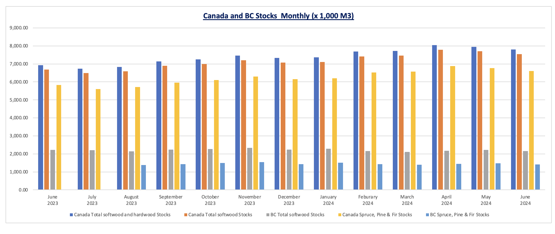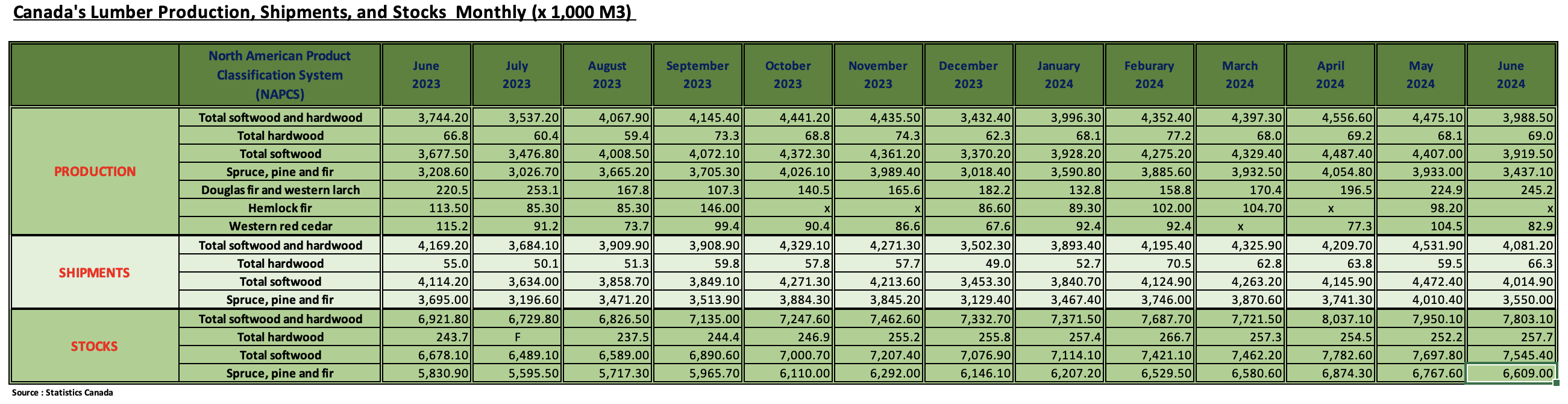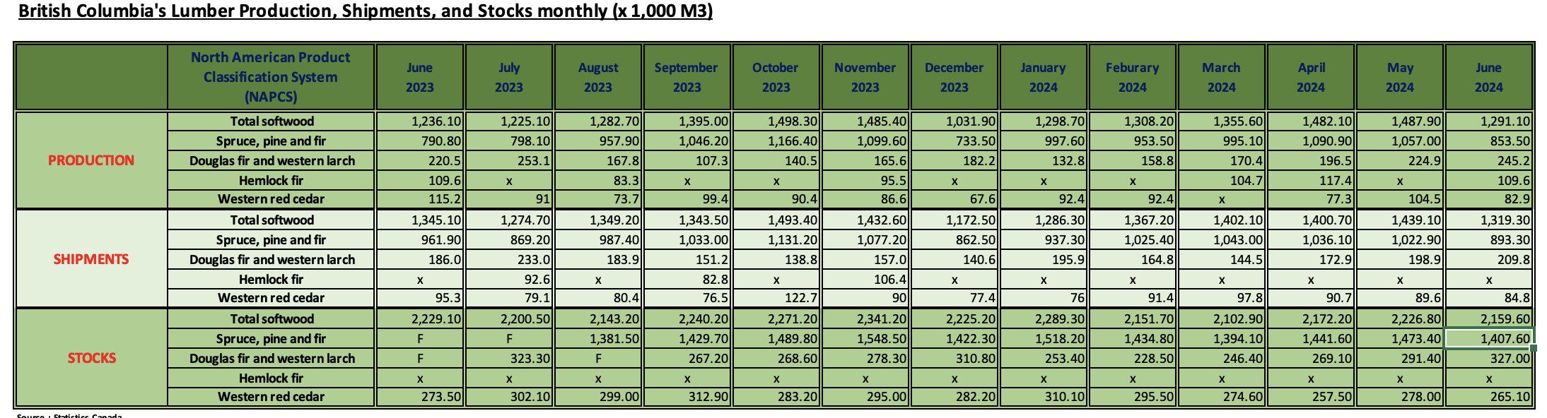 Southern Pine Composite 가격은 2024년 3월에 월간 가격이 최고로 $396이었고, 7월에는 $333이었습니다. $63 가격 범위는 2023년의 $116보다 심각하게 가격 변화폭이 좁았습니다. Southern Pine의 가격 변동이 적은 것은 또한 2024년에 광범위한 북미 시장에서 명백하였습니다. Southern Pine 거래자들은 공급과 수요는 2024년 전체적으로 평형에 가까운 균형을 유지할 것으로 예측합니다. 가을 건설 시즌이 다가오고, 선선한 날씨로 시공 업자들이 작업 활동을 늘릴 수 있기때문에 남부에서의 수요가 강화될 것이라고 주목합니다. 더군다나 미국 연방 준비 제도(Federal Reserve)기 올해가 끝나기 전에 적어도 한번은 최 우대 대출 금리를 하락 시킬 것이라는 가장 최근의 경제 경향으로 악화된 주택 시장에 활력을 줄 수 있습니다. 하지만 소비가 계절적인 상승을 보여줄지라도 앞으로 몇달 내에 수요가 눈에 띄게 증가할 것이라고 예상하는 거래인은 별로 없습니다. 공식적으로 발표하거나 좀 더 조용하게 실행중인 최근 공장들의 감산은 2024년 8월의 무기력한 수요에 공급이 맞추어 조정되는데 도움이 되었습니다. 일부 새로운 공장이 남부에서 운영을 시작하였지만 이런 감산들이 상승하는 생산량을 경감하는데 도움이 되었습니다.