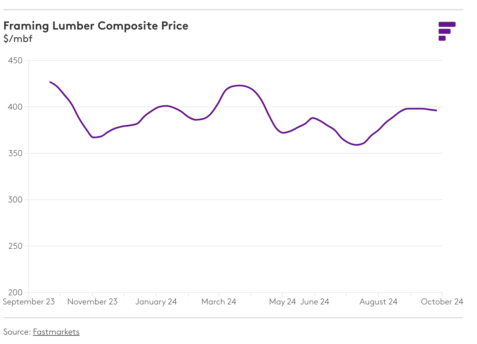 목재 선물은 주 초반에 급등했지만 수요일에 다시 하락했습니다. 월 초반에는 실물 시장에 프리미엄이 계속 상승하여 일부 교역자들에게 기본적인 기회를 제공했습니다. 허리케인 헬레네(Helene)가 멕시코만을 통과하면서 안정적인 Southern Pine 시장이 중단되었습니다. 구매자들은 장 초반에 대부분 즉각적인 수요를 충당하고 한 주가 지나면서 신규 주문을 축소했습니다.