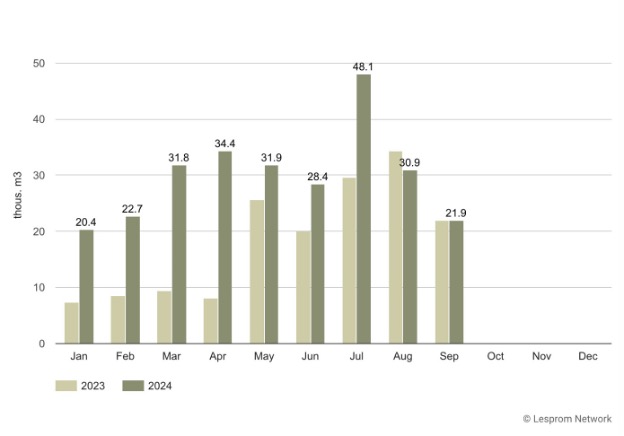 Russia’s exports of hardwood plywood to China shoot 64% in January – September 2024