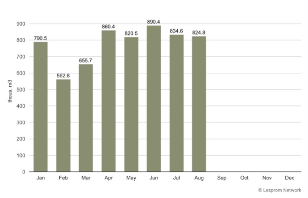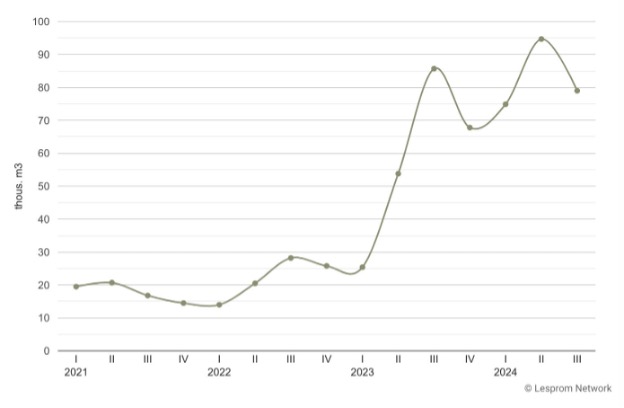 Russia’s hardwood plywood exports to China from January 2021 to August 2024