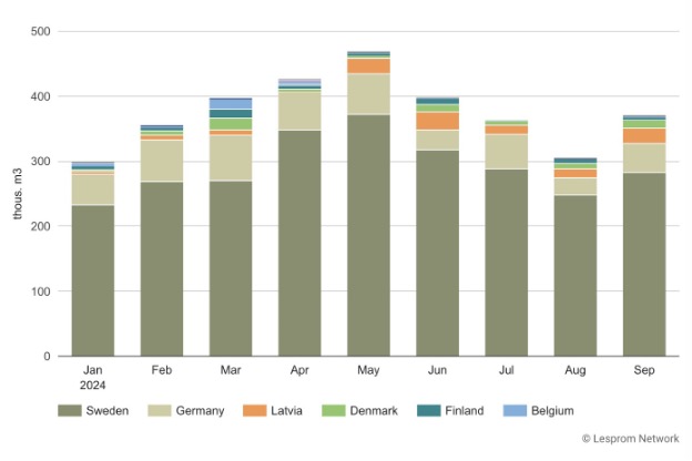 Norway’s sawlog exports by destination in January – September 2024
