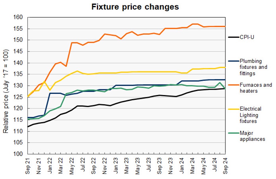 특정 건설 자재 가격의 놀라운 안정세는 9월에도 계속되었으며, 배관 설비와 부품, 보일러와 히터의 가격 지수는 각각 지난 4개월 동안 6자리 수로 변동이 없는 것으로 제시되었습니다.