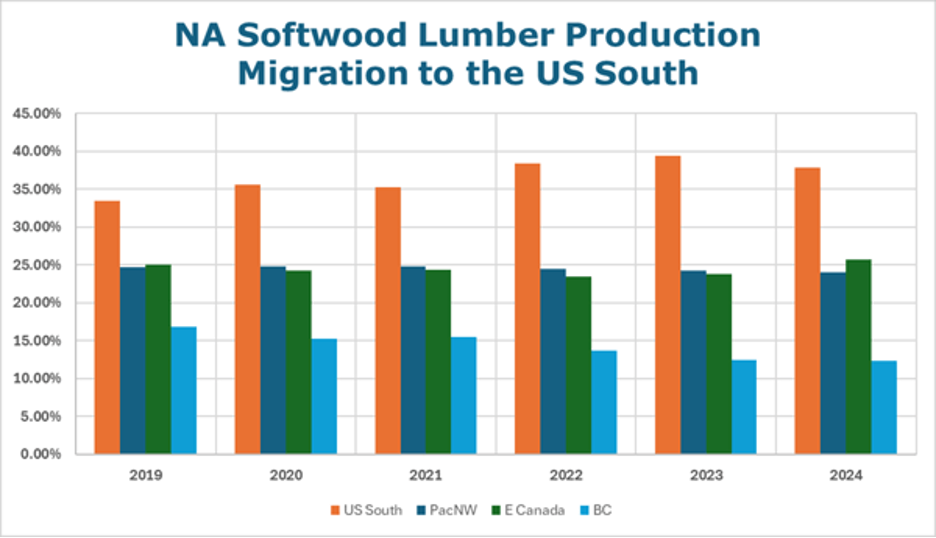 ResourceWise 데이터에 따르면 지역간 시장 역학이 상당한 차이가 있는 것을 보여주고 있습니다. 예를 들어, 북서부에서의 제재목용 원목 가격은 미국 남부의 가격과 비교하여 눈에 띄는 변동성을 보여 주었습니다. 이러한 경제적 변동은 고비용 공장에 추가적인 압력을 가하고 있는데, 특히 2024년내내 다수의 제재소와 펄프 & 제지 공장이 폐쇄되는 것을 목격하였습니다.