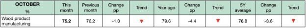 2024년 12월 6일로 마감한 주의 침엽수 제재목 기준 가격인 Western Spruce-Pine-Fir 2×4 #2&Btr KD (RL)의 가격은 US$475 mfbm으로 전주 가격인 $470보다 $5, 1% 상승하였고, 전월 가격인 $461과 비교하면 $14, 3% 높았습니다. 1년전 같은 시기의 가격인 $408 mfbm에 비하여 $67, 16% 상승하였고, 2년전 같은 시기의 가격인 $400과 비교하면 $75, 19% 높았습니다.