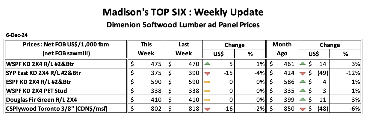 이번 추수감사절 이후 미국 추수감사절 주간은 조용한 한 주였습니다. 구매자들은 방관자로 물러나 있고 제재소는 2025년까지 명확한 주문 파일로 확고한 가격을 책정했습니다.