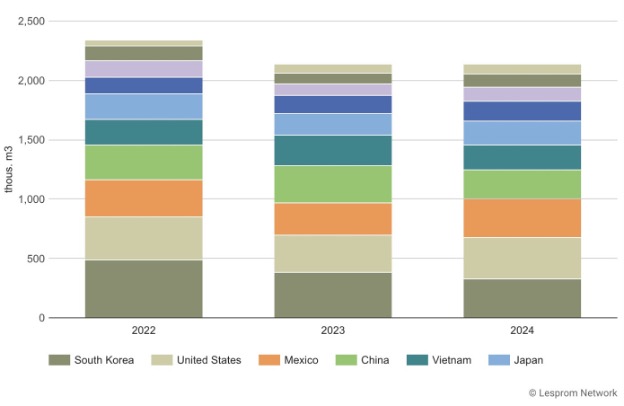 Chile’s exports of lumber by destinations in 2022 – 2024