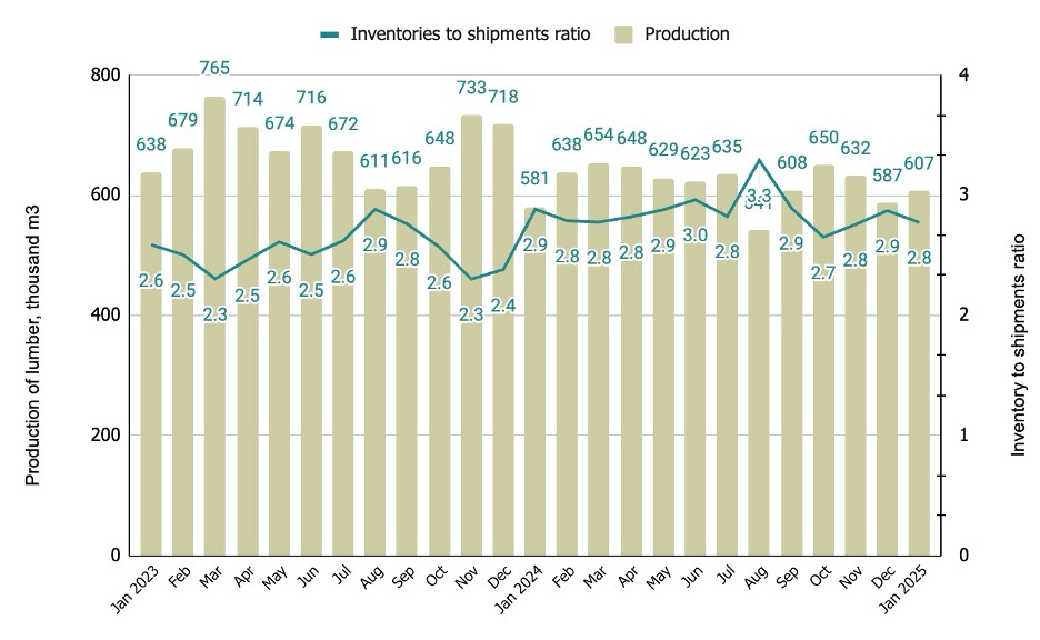 2025년 초 로스앤젤레스(Los Angeles) 전역에서 화재가 발생하면서 다수의 주택이 파괴되었습니다. 16,000채 이상의 주택과 기타 구조물이 화재로 인해 손상되거나 파괴되었습니다. 재건축에는 앞으로 몇 달 동안 상당한 양의 목재와 기타 건축 자재가 필요하여 제재목 수요가 증가할 것입니다. 한편, 만약에 주택 융자 이자율이 하락하기 시작하면 미국의 억눌린 주택 수요는 제재목 수요를 증가시킬 가능성이 높습니다. 많은 현재 주택 소유자가 현재 금리보다 훨씬 낮은 주택 융자 이자율을 보유하고 있기 때문에 기존 주택 판매는 정체된 상태입니다. 기존 주택을 판매할 수 없기 때문에 수요를 충족하기 위한 신규 주택 건설 수준이 높아져 제재목 수요가 더욱 증가합니다.