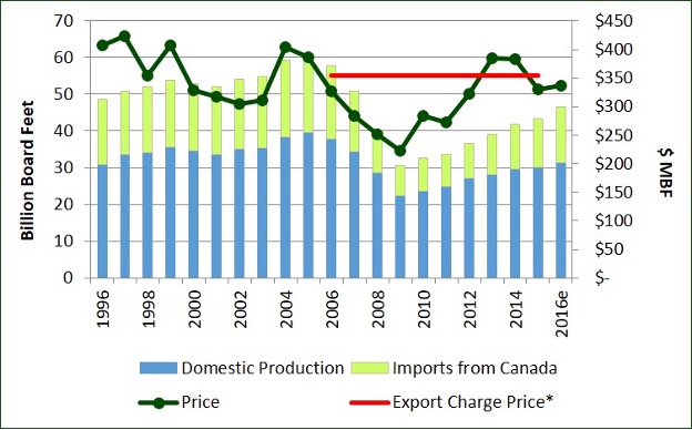 최근 미국과 캐나다 간의 무역 분쟁 재발은 제재목을 둘러싼 수십년간의 분쟁 중 가장 최근의 일입니다. 이 갈등은 입목 벌채권(stumpage) 수수료에서 시작되었습니다. 입목 벌채권(stumpage) 수수료는 정부 소유 토지에서 목재를 수확하기 위해 지불하는 금액입니다. 캐나다에서는 목재 양(m3), 수종, 단위당 가격과 같은 지표를 기반으로 이러한 수수료를 계산합니다. 입목 벌채권(stumpage) 수수료가 시장 금리보다 낮을 때 벌목업자는 사실상 국제 경쟁자보다 유리합니다. 그리고 토지 소유의 특성상 캐나다는 그 혜택을 누리고 있습니다. 1980년대 초부터 미국은 이에 대응하기 위해 정기적으로 관세를 부과해 왔으며, 이러한 노력은 수년에 걸쳐 불안정하게 흔들리는 수입 수준을 통해 확인할 수 있습니다. 이러한 노력 중 하나에는 조 바이든 (Joe Biden) 대통령 하에서 2021년 대부분의 캐나다 침엽수 제재목 생산업체에 대한 관세가 8.99%에서 17.9%로 인상되는 등의 조치가 포함되었습니다. 하지만 트럼프의 2025년 행정명령은 역대 가장 공격적인 조치입니다.