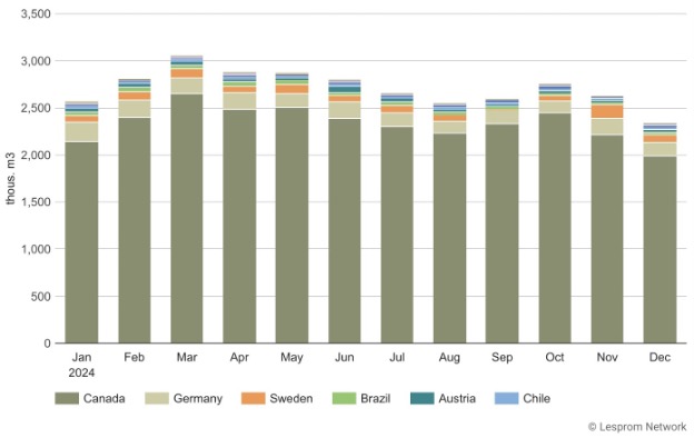 캐나다 제재목의 높은 비용은 다른 공급원에 경쟁 우위를 제공합니다. 미국 제재목 수입에서 각각 5.9%, 2.7%, 1.5%의 점유율을 차지하고 있는 독일, 스웨덴, 브라질은 구매자들이 대안을 모색하면서 수요가 증가할 수 있습니다. 2024년 독일과 스웨덴의 대미 수출은 각각 20%, 15% 감소했지만, 미국 가격 상승은 이러한 추세를 반전시킬 수 있습니다. 작년에 대미 수출이 28% 증가한 칠레도 수혜를 입을 수 있는 위치에 있습니다.