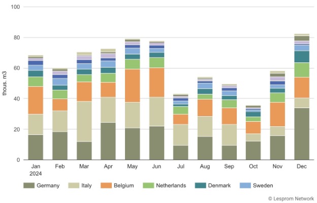 다른 주요 시장으로는 네덜란드(68,000m³, 39% 증가), 덴마크(44,000m³, 20% 증가), 스웨덴(38,000m³, 90% 증가)이 있습니다. 에스토니아와 핀란드의 수입 성장률이 가장 크게 상승하여 에스토니아는 94% 증가한 16,000m³, 핀란드는 126% 증가한 13,000m³ 이었습니다.