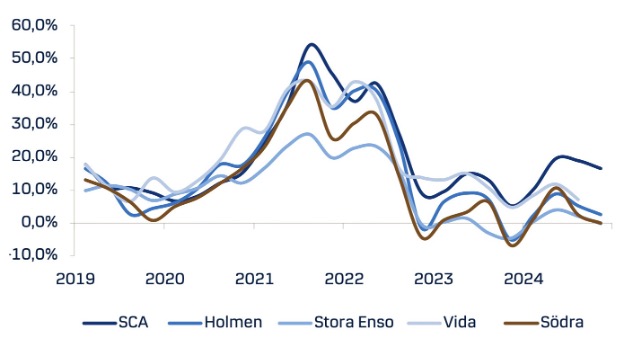 분석가들은 SCA의 실적 개선이 2019년 업계 평균과 비슷한 수준이었던 이전 경기 침체와 눈에 띄는 대조라고 강조하였습니다. 이러한 장점은 잘 투자된 제재소와 SCA 자체 산림 자원과의 강력한 통합에 기인합니다.
