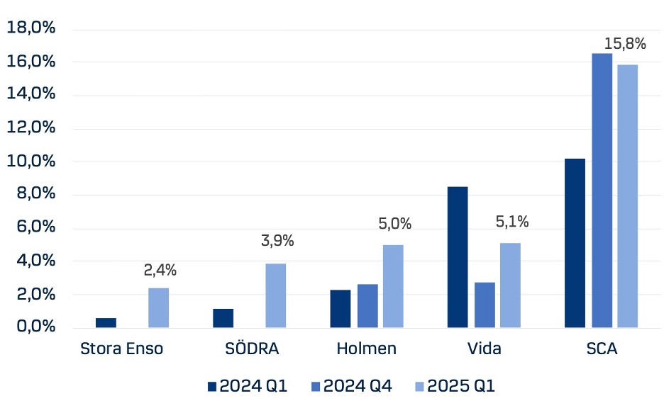 스웨덴 제재소들은 2025년 하반기에 접어들면서 원목 가격 상승과 판매 가격 정체로 업계 전반의 마진이 감소함에 따라 더욱 신중한 입장을 보이고 있습니다. Danske Bank에 따르면 이러한 분위기 변화는 주요 유럽 시장의 안정적인 매출과 비교적 견조한 연초에도 불구하고 나타난 현상입니다.