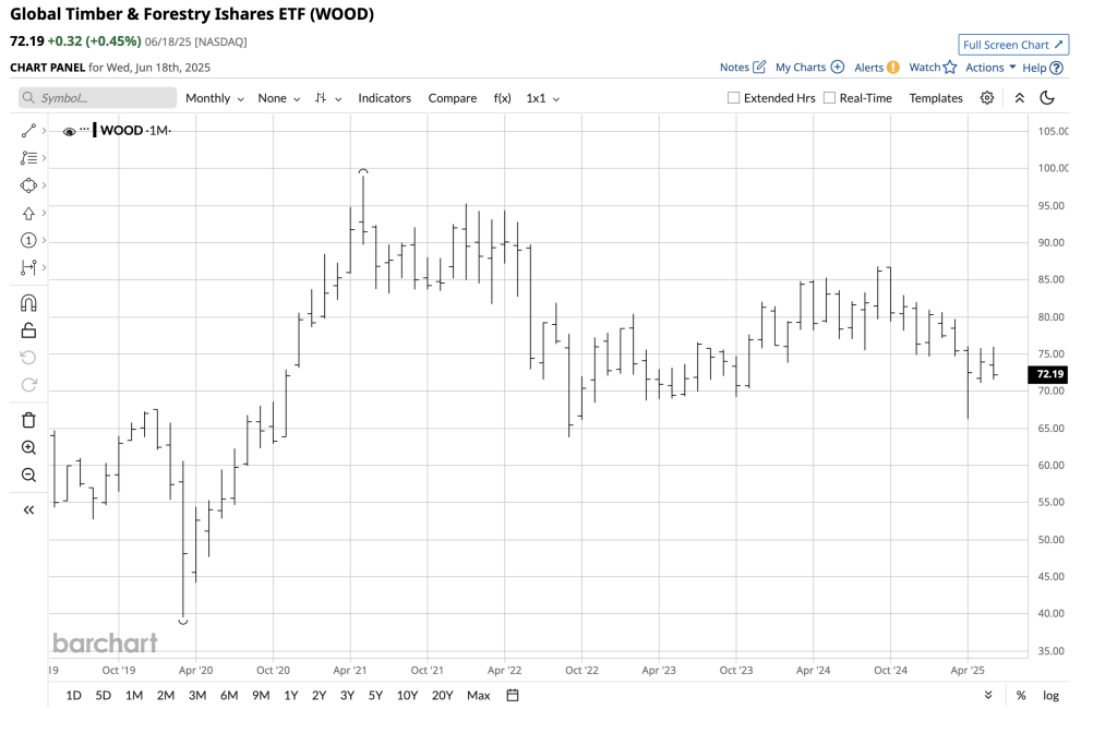 WOOD ETF와 목재 가격에 대한 약세 전망은 다음과 같습니다.