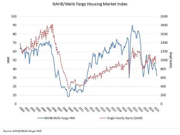 높은 주택담보대출 금리와 관세, 그리고 경제적 불확실성으로 인해 매수자들은 점점 더 관망세로 돌아섰습니다. 결과적으로 최근 HMI 조사에 따르면 건설업체의 37%가 6월에 가격을 인하했다고 답했는데, 이는 NAHB가 2022년 월별 집계를 시작한 이후 가장 높은 수치입니다. 이는 5월에 가격을 인하했다고 답한 건설업체의 34%, 4월에 29%와 비교되는 수치입니다. 한편, 6월 평균 가격 인하율은 5%로 작년 11월 이후 매달 동일한 수준을 유지했습니다. 6월 판매 인센티브 사용률은 62%로 5월보다 1%포인트 증가했습니다. 증가하는 재고 수준과 주택 구매 여건이 개선되기를 기다리며 기다리는 잠재 구매자들로 인해 대부분의 시장에서 가격 상승세가 약화되고 있으며 점점 더 많은 시장에서 재판매 가격이 하락하고 있습니다. 현재 시장 상황을 고려할 때 NAHB는 2025년 단독 주택 신축이 감소할 것으로 전망하고 있습니다.