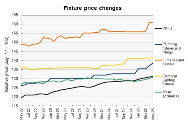 최근 건설 자재 가격은 경직되어 있습니다. 몇 달 동안 거의 또는 전혀 변동이 없다가 갑자기 급등하기도 합니다. 5월에는 이러한 건설 자재 가격 지수 중 두 가지만 변동을 보였습니다. 배관 설비와 부속품 가격 지수는 1.1% 상승했습니다. 이는 지난달 1.3% 상승에 이은 것입니다. 그러나 이러한 상승은 1월부터 3월까지 가격 지수가 변동이 없었던 기간이후에 이어진 것입니다. 주요 가전제품 가격 지수는 이번 달 0.6% 상승했습니다. 지난 두 달 동안 1.1% 상승했지만, 전년 대비로는 0.9% 상승에 그쳤습니다.