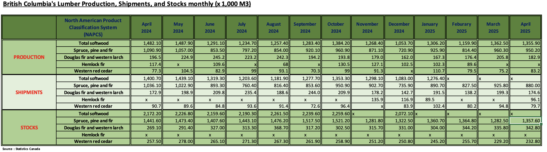 - Western S-P-F 매수는 지속적으로 신중했지만, 캐나다와 미국에서는 공급이 중간 수준이었습니다.
