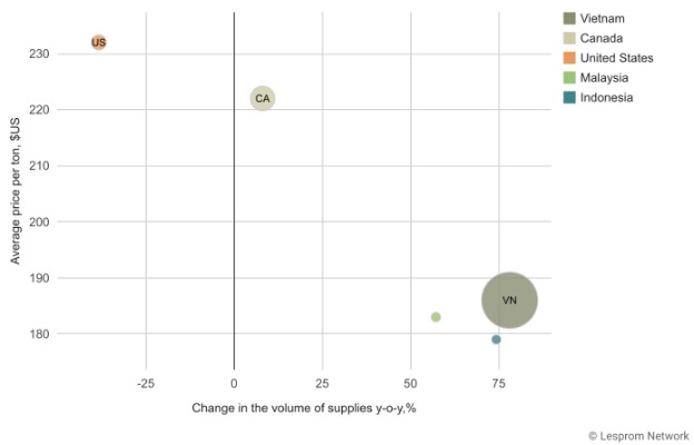 Japan’s wood pellet imports by country, January–July 2025 / Ministry of Finance of Japan
