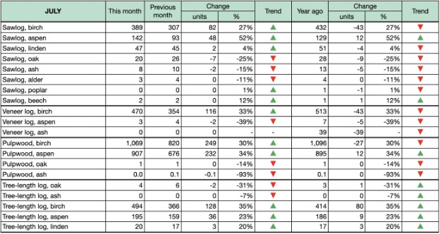 수출 시장에서 러시아 수출업체들은 엇갈린 상황에 직면했습니다. 7월 러시아산 제재목 수출량은 6월 대비 18% 증가했지만, 출하량은 전년 대비 13% 감소했습니다. 중국은 여전히 러시아 공급업체들의 주요 수출 대상국이지만, 러시아 수출업체들은 더 낮은 가격을 제시하는 벨라루스 기업들과의 치열한 경쟁에 직면하고 있습니다. 러시아 수출업체들의 상황은 중국 건설 부문의 지속적인 위기로 인해 제재목 구매가 전반적으로 감소하면서 더욱 복잡 해졌습니다. 7월 중국 건설 부문 투자는 전년 대비 17% 감소하였고, 중국의 수입 제재목 가격 또한 하락하고 있습니다. 러시아에서 일본으로의 제재목 수출은 여전히 부진한 상태입니다. 선적량은 전년 대비 19% 감소했습니다. 이는 일본 국내 제재목 생산량 증가와 건설 활동 감소에 기인합니다. 7월에는 일본의 러시아 spruce 제재목 가격이 상승했지만, 8월에는 추세가 반전되어 10월까지 추가 하락이 예상됩니다. 반면 pine 제재목 가격은 8월에 일부 회복세를 보였지만, 9월에는 다시 하락세가 예상됩니다. 카자흐스탄에서는 7월 건설 활동이 6개월 만에 처음으로 감소했습니다. 카자흐스탄의 러시아산 침엽수 제재목 가격은 하락하고 있지만 여전히 1년 전보다 높습니다. 러시아산 침엽수 제재목 가격은 9월에도 계속 하락할 것으로 예상되지만, 활엽수 제재목 가격은 안정세를 유지할 것으로 예상됩니다.