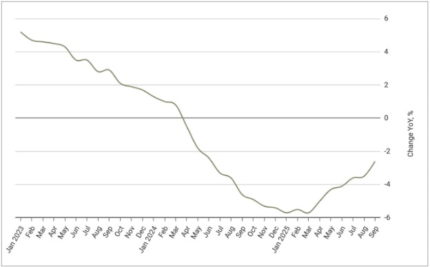 특정 목재 수종별로 살펴보면, 중국은 2025년 9월 침엽수 원목과 제재목을 3,360,000 m3 수입하여 전체 수입량의 72%를 차지했는데, 이는 전년 대비 4.3% 감소한 수치입니다. 수입액은 US$529 million로 전년 대비 3.5% 감소했습니다. 이 중 침엽수 원목은 2,000,000 m3로 전체 침엽수 수입량의 59.5%를 차지했으며, 이는 전년 대비 약 7.4% 감소한 수치입니다. 수입액은 $244 million로 전년 대비 12.1% 감소했습니다. 9월 침엽수 원목 수입 평균 가격은 전년 대비 5.15% 하락했습니다. 침엽수 제재목 수입량은 1,360,000 m3로 전년 대비 0.7% 소폭 증가했습니다. 수입액은 $284 million로 전년 대비 5.4% 증가했습니다. 9월 침엽수 제재목 수입 평균 가격은 전년 대비 4.7% 상승했습니다.
