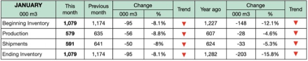 일본 농림수산성(Ministry of Agriculture, Forestry and Fisheries of Japan)의 새로운 자료에 따르면, 2026년 1월 일본 제재소의 목재 생산량은 579,000 m³로 전월 대비 8.8%, 전년 동기 대비 4.6% 감소했으며, 연간 환산 생산량은 6,950,000 m³를 기록했다. 1월 출하량은 총 591,000 m³로, 전월 대비 7.8%, 전년 동기 대비 5.3% 감소했습니다. 기말 재고량은 1,080,000 m³로, 전월 대비 8.1%, 전년 동기 대비 15.8% 감소했다.