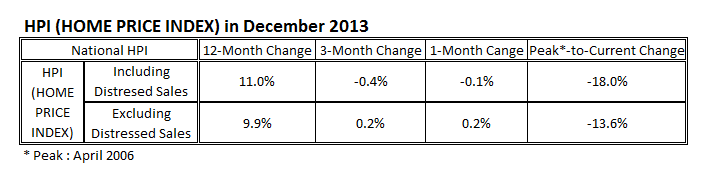 출혈 구매 (distressed sales) 를 포함한 2013년 12월 미국 주택 가격은 2012년 12과 비교하여 11.0% 성장하였고, 출혈 구매를 제외하면 전년 대비 9.9% 상승하였습니다. 전년 대비 상승을 23 개월 연속으로 보여 주었습니다. 주택 가격 상승은 판매자 에게도 호재로 작용하고, 억눌린 공급을 해소 할 수 있기 때문에 2014년 주택 가격에 적정한 효과를 보여 줄 것으로 예상합니다.