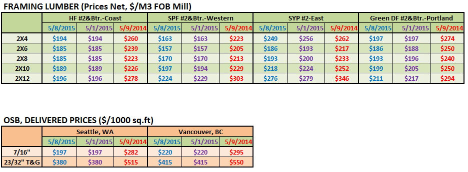 미국 서부지역과 캐나다 서부 지역에서의 가격 움직임이 적었던 이유은 생산업체들이 과도한 재고 정리와 주문 재건에 초점을 마추면서 가능하게 되었습니다. 그러면서 Western SPF의 가격은 한주 동안 좀처럼 움직이지 않았습니다. 연안지역 생산자들은 목요일에 가격 강새 오퍼를 제시하였고, 몇몇 수주가 이루어 졌습니다. 구매는 미국보다는 캐나다에서 더 많이 이루어 졌는데, 공휴일 주말을 준비하였기 때문입니다. Continue reading